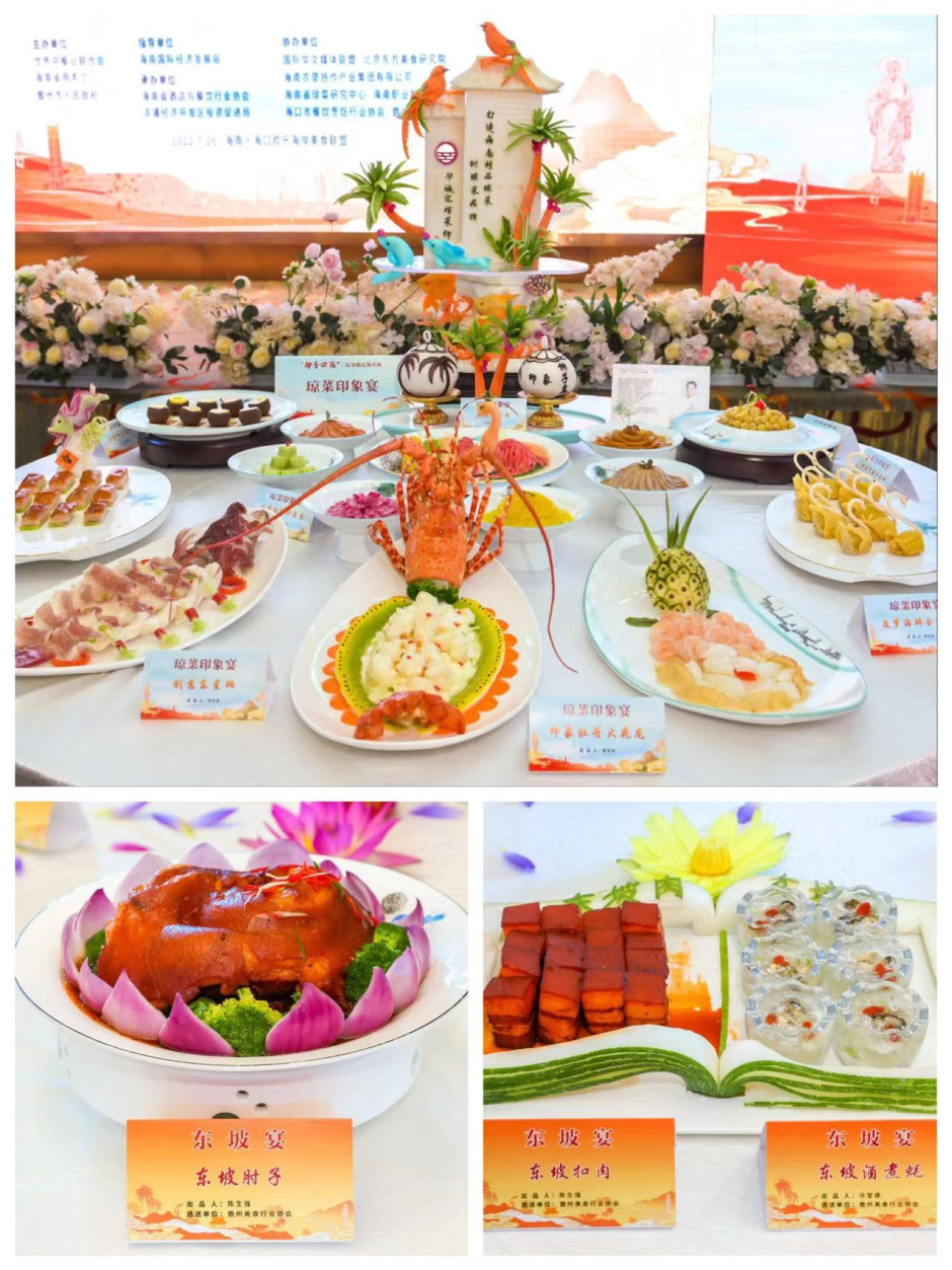 活动以“椰香四海”为主题,通过创意的烹饪、经典的味道、精辟的文字、美感的设计、生动的图片,记录属于琼菜的独特印象,现场发布“由国宴琼菜大师、资深中国烹饪大师李学深团队出品的琼菜印象宴,海南省五一劳动奖章获得者、中华金厨奖、琼菜大师陈大贵团队出品的海南琼菜盛宴,儋州美食行业协会团队出品的东坡宴”的三席琼菜盛宴,并展示推介海南知名餐饮酒店企业团队出品的66道经典琼菜及主宾市儋州出品的45道佳肴。