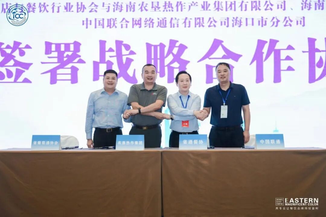 为提升海南餐饮业国际服务水平和品牌影响力,提升餐饮业高质量发展,推动餐饮与酒店、农业、食品、旅游、科技、金融等产业的融合发展,助力乡村振兴,引领餐饮人在新时代下合力共赢,更好地服务海南自贸港和国际旅游消费中心建设,大会上海南省酒店与餐饮行业协会与海南农垦热作产业集团有限公司签约战略合作协议。