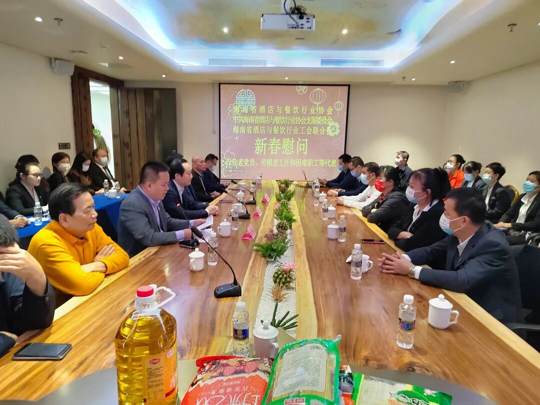 一直以来,省酒餐协致力于服务政府、服务社会、服务企业,积极履行职能、勇于担当社会责任、真情回馈社会,以实际行动贯彻落实党的十九大精神,携手行业企业高质量助力海南自贸港建设。本次迎新春•送温暖慰问活动既体现行业协会、党支部、工会、爱心企业对行业优秀党员、劳模工匠、困难职工、社会弱势群体的关心和爱护之情,亦体现协会与行业广大职工同呼吸、共命运、心连心的血肉之情,还体现行业爱心企业积极参与公益事业,履行社会担当的大爱之心。真情暖人心,携手克时难!座谈交流会上,协会负责人期望今日的爱心行动能够把行业的深情和厚爱传递到全行业40多万职工的心中,化为行业职工前进的动力,携手共进、同心同行,共同助推酒店与餐饮行业高质量发展,谱写新时期行业发展绚丽篇章。