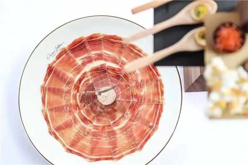 今天,带大家了解下猪肉界的劳斯莱斯 - 伊比利(Iberico)火腿贵为欧洲九大传奇食材之一,比意大利的Parma Han要闻名且昂贵。在西班牙,上好的伊比利火腿是用来单吃配酒的,做菜时十分讲究,要切得很薄,每片都近乎透明,吃的时候可以用手捏食,然后,将整片放入口中慢慢咀嚼,食后有一种绵长绕口不绝的醇香在口中长留。西班牙伊比利亚火腿。美味与金贵的源头是牧场和橡果,像葡萄酒的好坏取决于优质葡萄,伊比利亚火腿的优差也取决于橡果。以橡果喂养、在草场放养、且最小活动范围10000平方米的100%纯种伊比利亚黑猪,才能制成最高级别的伊比利亚火腿。伊比利亚火腿一般分为四个等级 黑标最佳,其次,红标,绿标,白标。伊比利火腿的制作时间一般为2至3年。这种火腿的制作流程复杂漫长 猪腿用高级海盐来腌,没有人工添加剂和化学成分 肉质切面色如玫瑰、薄如蝉翼,细密带透明的雪白脂肪纹路,宝石般透亮,闪着诱人油光 - “肉中软黄金”一片入口,迷人的咸香和鲜美在口中蔓延。火腿,在中国并不陌生,但西班牙老饕们更迷恋火腿的鲜香,也给全世界爱吃人士带来无以伦比的味觉盛宴。汕头君华海逸酒店试业期间 ,优惠多多,价格从优,可送货上门,可邮寄到家,购买一整条火腿送火腿刀架数量有限 先到先得 营业时间9.00~23.00 联系电话 微信 17322589923