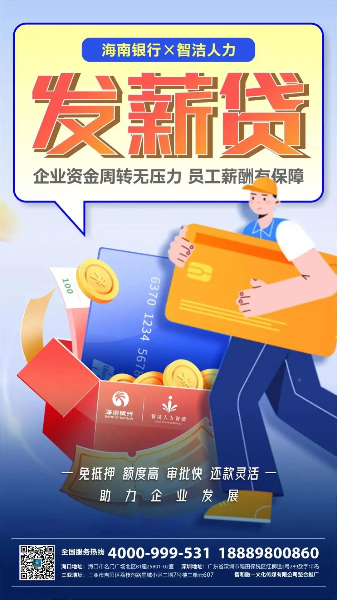 智洁人力携手海南银行,推出“发薪贷”战略合作,以“人力资源+金融”的模式,关注企业灵活用工资金短缺、周转困难等问题;助力企业解决灵活用工的资金问题,缓解企业资金压力,同时保障灵活就业人员工资,实现企业与员工共赢。