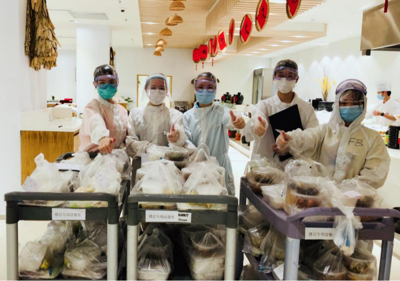 隔离团队接待时期,我们成立火线党支部,党支部的成立,极大的发挥了党员的先锋模范带头作用,点燃了很多干部员工的斗志,在党支部与群众代表进行了民主集中制的讨论后,决定党员和管理干部身先士卒,迎难攻坚,在坚持保障了2天隔离团队的客房清扫及送餐服务后,迅速总结经验,激发了整个团队的服务信心。在这期间的服务中,我们也照顾到了旅客的个性化要求。对于患有基础病的客人,我们提供了低糖低脂餐饮,甚至后期对于客人推行了点餐制度,让客人在隔离期间能吃上一份想吃的餐食,对于隔离的客人,我们尽量做到温暖的服务,不让口罩阻挡住我们善意的笑容。