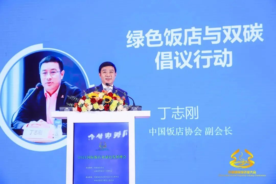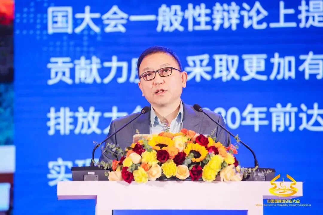 图丨中国饭店协会副会长丁志刚介绍绿色饭店与双碳倡议行动