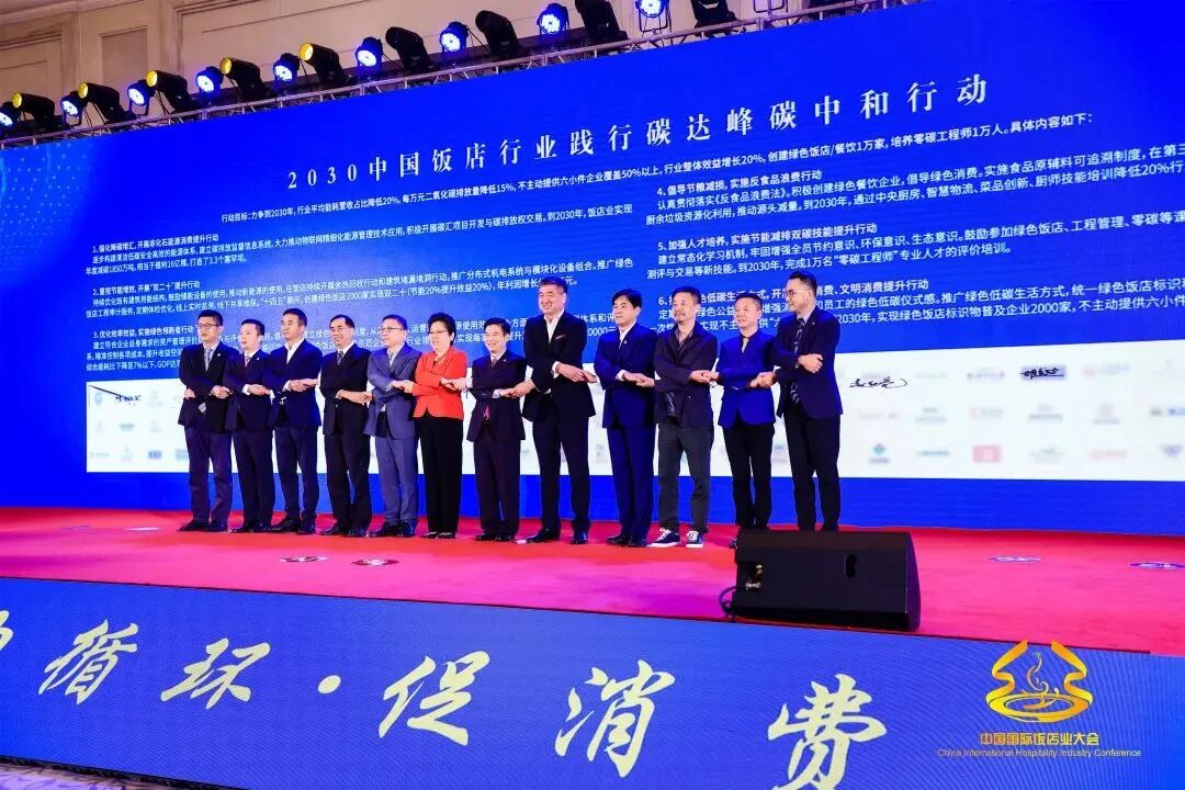 第六届中国国际饭店业大会坚持以“绿色推动饭店行业发展”为宗旨,依托《绿色饭店》、《绿色餐饮经营与管理》等国家标准推动住宿餐饮行业高质量发展。前五届大会上,中饭协与各地政府签署了绿色发展合作,与企业共同推出净放芯、3C品质客房等落地项目,发布绿色饭店领跑者体系,表彰年度优秀绿色饭店企业及个人等。本届大会上,全国绿色饭店工作委员会、中国饭店协会联合各有关单位共同发布“2030中国饭店行业践行碳达峰碳中和行动倡议书”,号召全行业积极行动,力争到2030年,行业平均能耗营收占比降低20%,每万元二氧化碳排放量降低15%,不主动提供六小件企业覆盖50%以上,行业整体效益增长20%,创建绿色饭店/餐饮1万家,培养零碳工程师1万人。