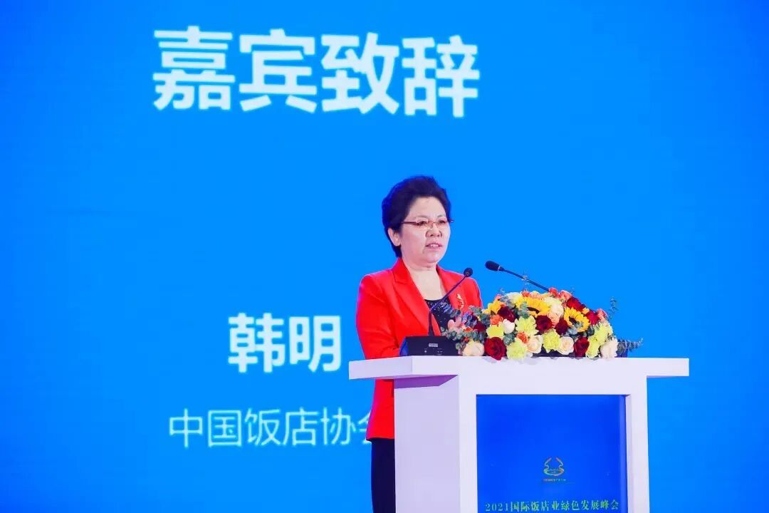 图丨中国饭店协会资深会长、国际饭店与餐馆协会亚太区主席 韩明 致辞