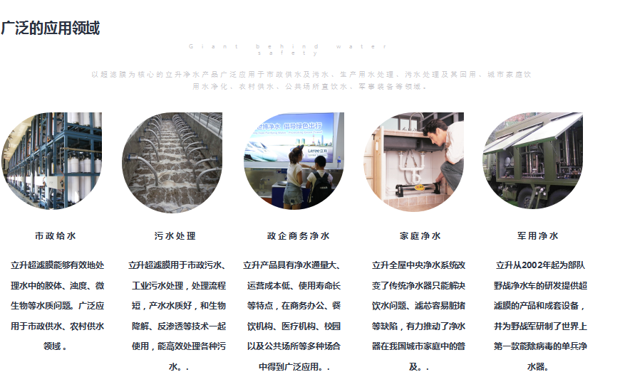 立升企业成立于1992年,是一家集膜技术研发、生产和销售服务于一体的集团型高科技企业。29年来一直专注于“膜”技术研发,始终坚持走自主科技创新之路。先后承担2000年国家科技攻关项目,“十五”“十一五”“十二五”国家科技攻关计划引导项目,以及863课题等重大科技攻关任务。目前拥有146项国内外核心专利(包括5项国外专利),取得“PVC合金毛细管式超滤膜的研发与应用”多项重大科研成果。