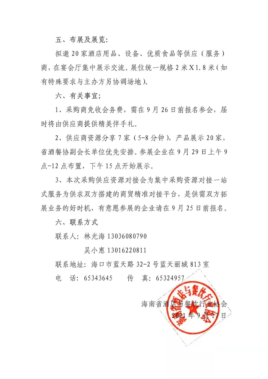 关于举办2021海南省酒店餐饮业金秋采购供应资源对接会暨新产品新技术发布会的通知