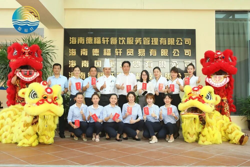 海口德福轩宴会酒楼经过几个月的精心准备和试营业运作,于2021年9月17日盛装开业。早上七点三十分准时开始隆重的开业庆典活动。由总经理主持、董事长发表开业致辞、重要嘉宾合影、董事长亲切关怀全体员工给德福轩的家人们派发红包等。