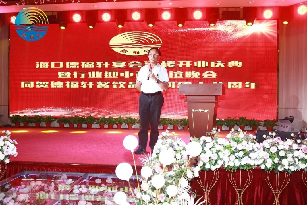 在晚宴活动上,海口德福轩酒楼董事长邵淼清首先致辞。邵淼清董事长指出,为了积极响应党和政府建设中国特色自由贸易港的号召,经过精心筹备和高效建设,德福轩酒楼海口店隆重开业了。酒楼顺利开业既体现了德福轩对海南自贸港建设的决心和信心,也展示了德福轩坚持走专业化餐饮集团发展战略的决心和信心。也是德福轩坚持做大强品牌餐饮初心的新里程。今后,德福轩要发扬海南楚商高质量发展企业的理念不动摇,积极为海南餐饮业的发展做出新贡献。