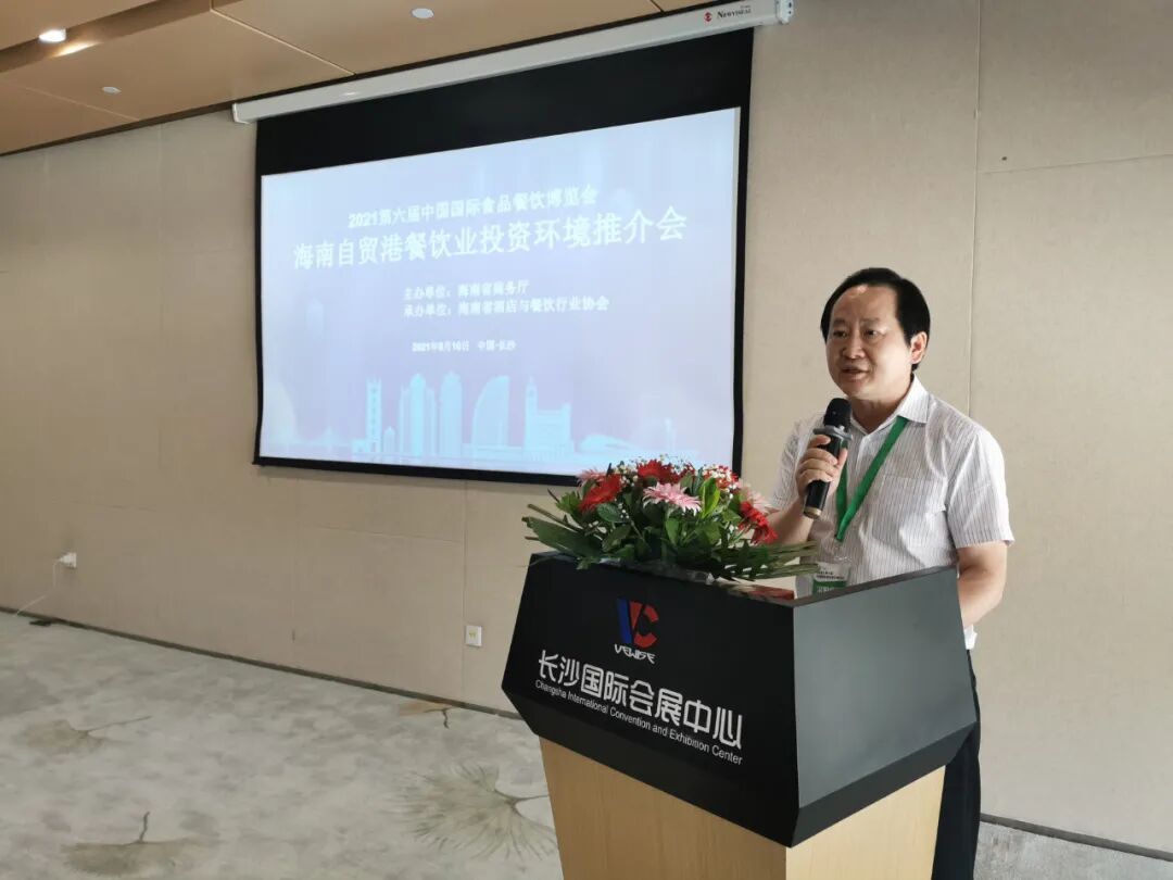 10日下午,为推动餐饮业高质量发展,携手湖南餐饮业合作共赢,为海南餐饮业招商引资注入新活力,以2021(第六届)中国国际食品餐饮博览会为契机,海南省商务厅委托海南省酒店与餐饮行业协会组织湖南等国内重点餐饮企业以及我省重点餐饮企业,在博览会期间召开“海南自贸港餐饮业投资环境推介会”。会议由中国饭店协会副监事长、海南省酒店与餐饮行业协会执行会长陈恒主持。