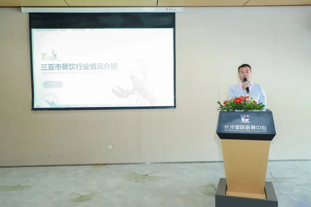 湖南省餐饮行业协会副会长、 湘菜产业供应链委员会主席黄惠明作发言,黄会长介绍近几年湖南不断涌现的餐饮“火爆”品牌,并表示未来非常期待湖南更多的餐饮品牌在海南相见,湖南省餐饮行业协会亦会把握海南自贸港餐饮新机遇,推动 “南-南” 餐饮交流合作。