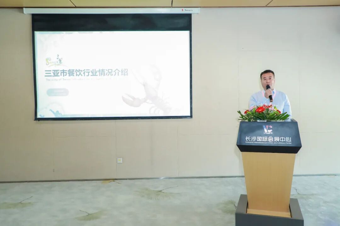 湖南省餐饮行业协会副会长、 湘菜产业供应链委员会主席黄惠明作发言,黄会长介绍近几年湖南不断涌现的餐饮“火爆”品牌,并表示未来非常期待湖南更多的餐饮品牌在海南相见,湖南省餐饮行业协会亦会把握海南自贸港餐饮新机遇,推动 “南-南” 餐饮交流合作。