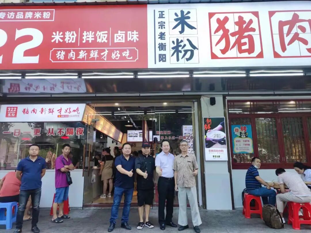 8日上午,考察团在杨平会长的带领下,前往衡阳市著名网红餐厅“322猪肉米粉铺”进行考察,并品尝当地特色美食“杀猪粉”