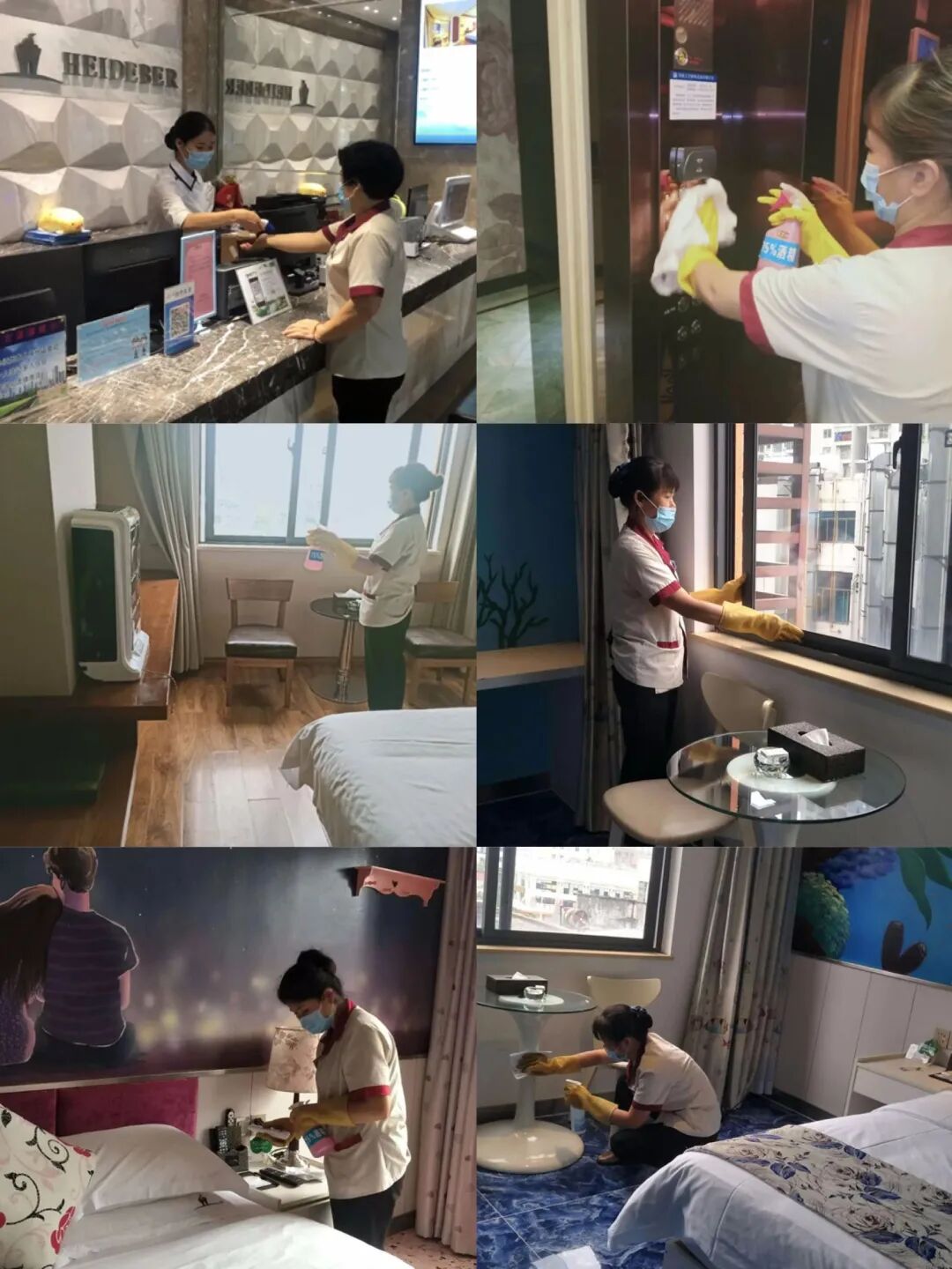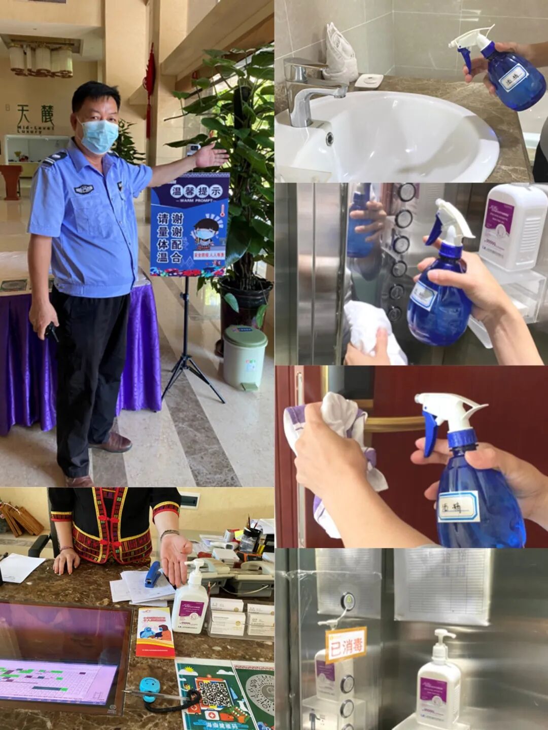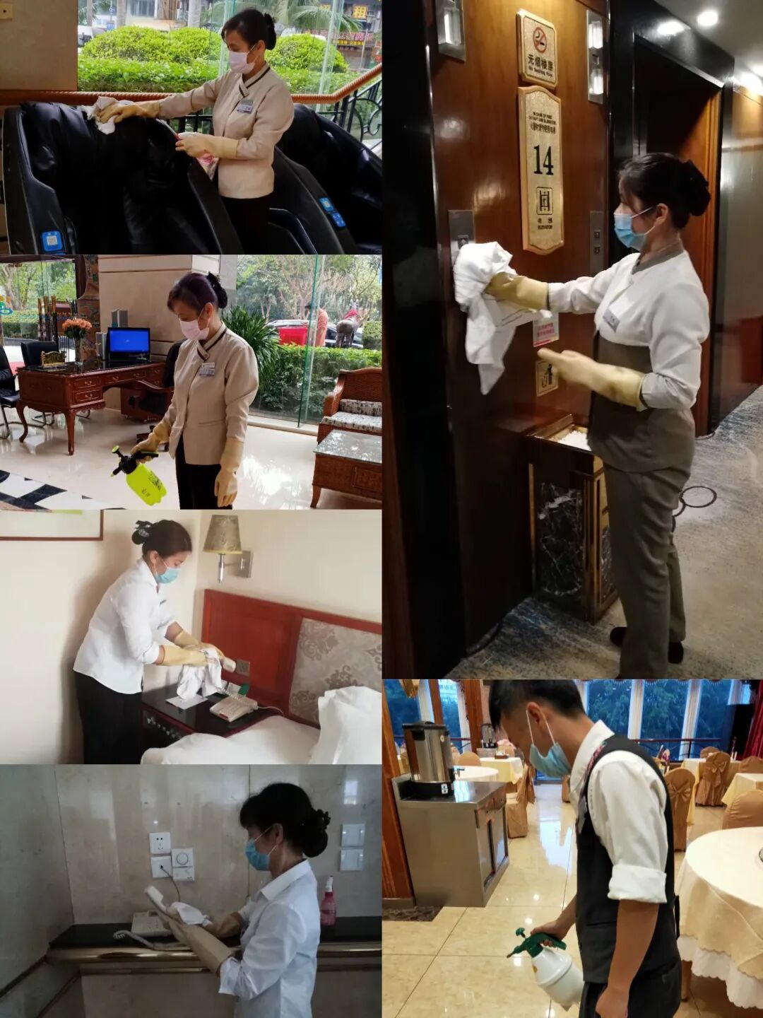 严格对酒店各区域进行消毒且做好记录,对房间清洁完后立即做清洁消毒,且每天不少于3次做好定点消毒,并建立了应急小组,如有发现特殊情况,立马向应急小组汇报,保证顾客安心入住。