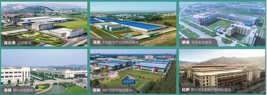四季沐歌拥有全国六大生产基地:连云港总部基地、顺德空气能制造基地、余姚厨电制造基地、洛阳太阳能产业链制造基地、邯郸壁挂炉及新风制造基地以及拉萨太阳能大型平板制造基地。