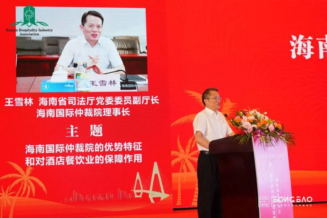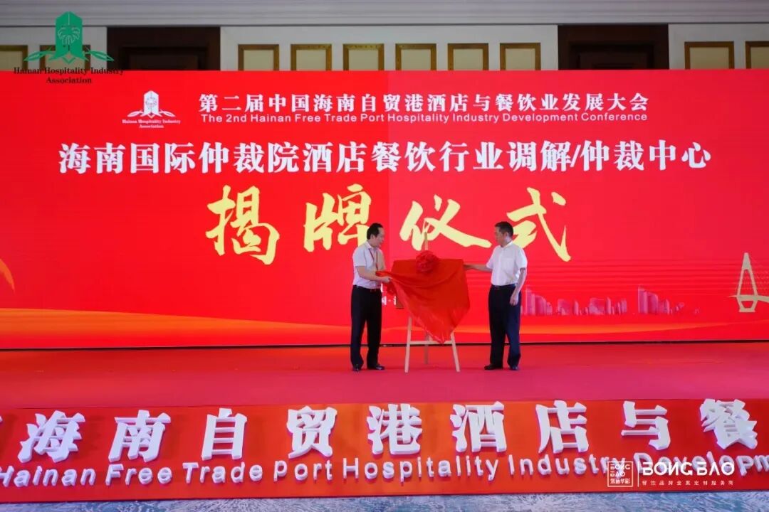在6月25日举办的第二届中国海南自贸港酒店与餐饮业发展大会开幕式上,海南省司法厅党委委员、副厅长,海南国际仲裁院理事长王雪林和海南省酒店与餐饮行业协会执行会长、海南国际仲裁院酒店与餐饮行业调解/仲裁中心主任陈恒共同为海南国际仲裁院酒店餐饮行业调解/仲裁中心揭牌。