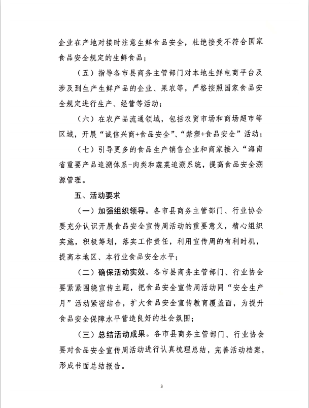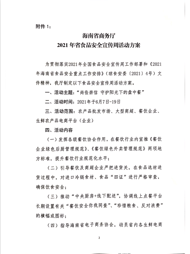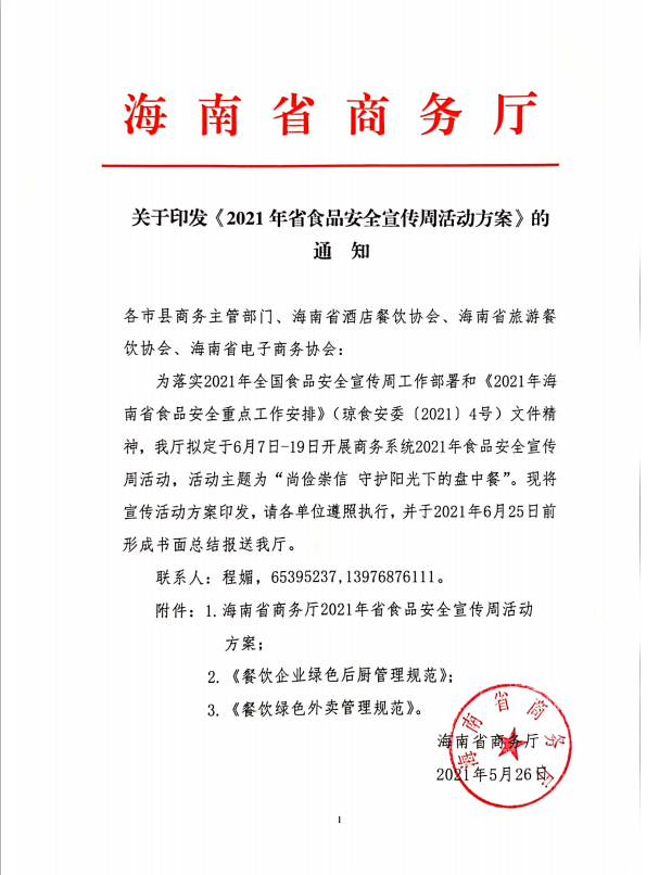 关于转发海南省商务厅2021年省食品安全宣传周活动方案