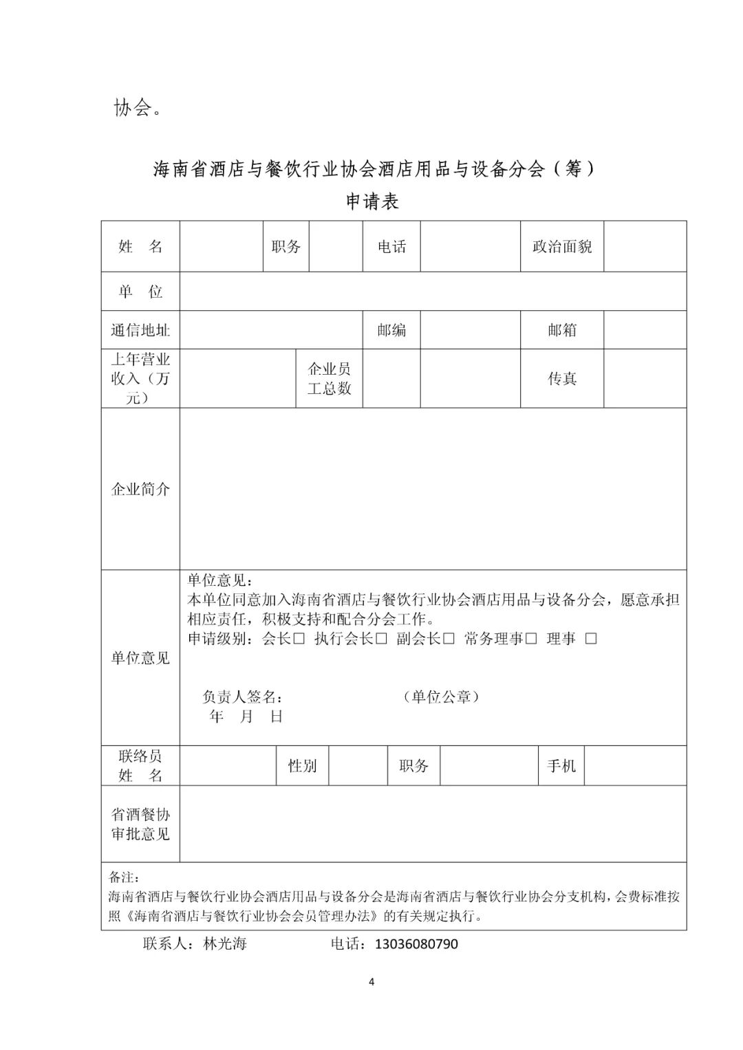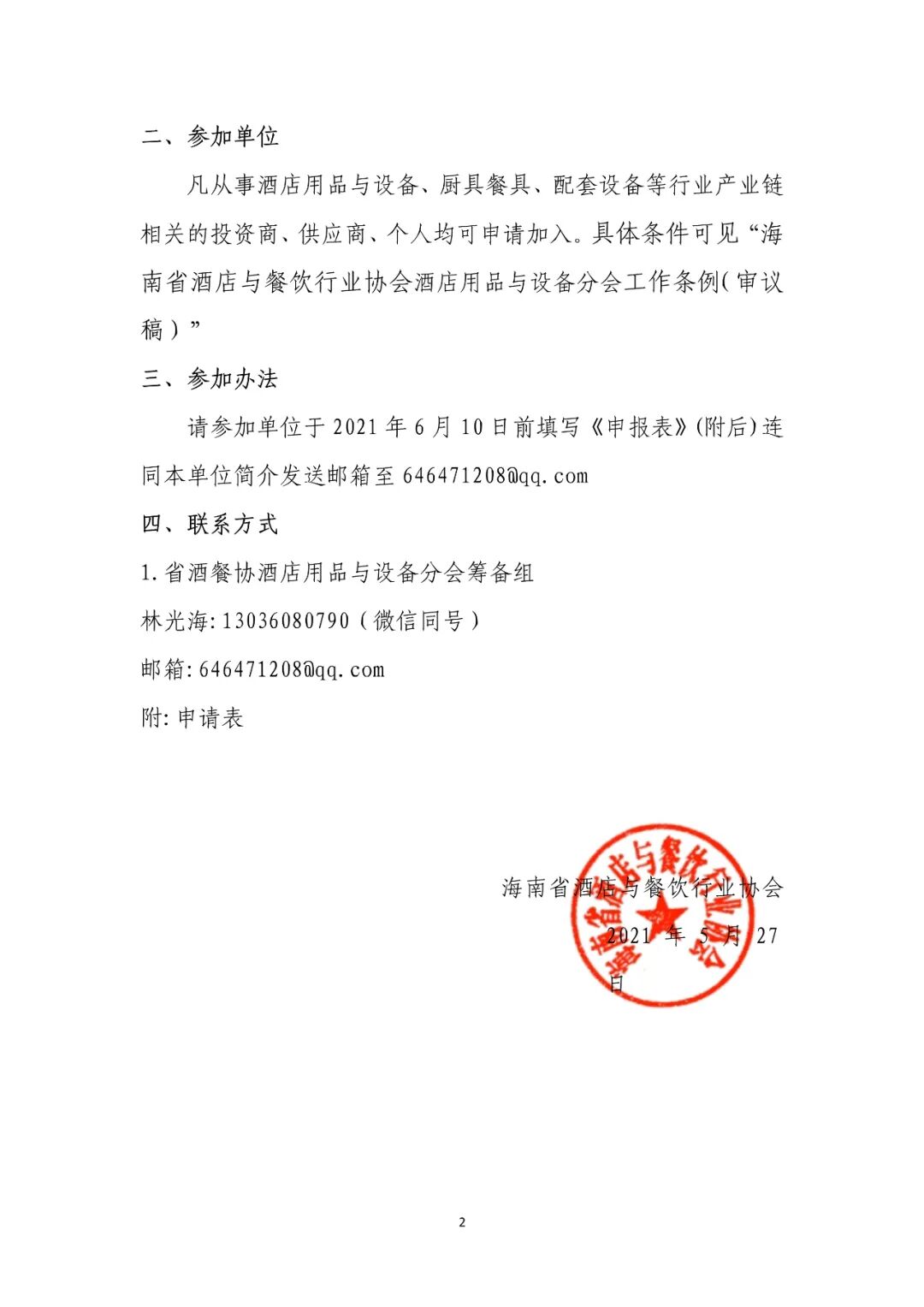 关于筹备成立海南省酒店与餐饮行业协会酒店用品与设备分会的函