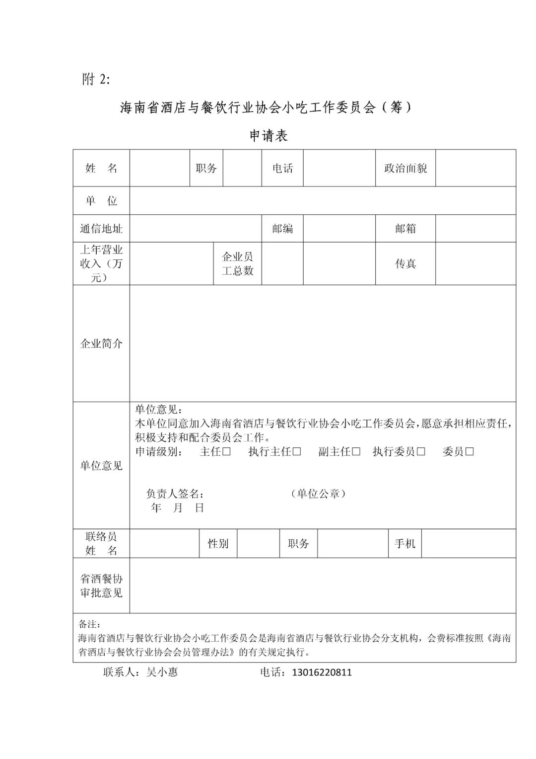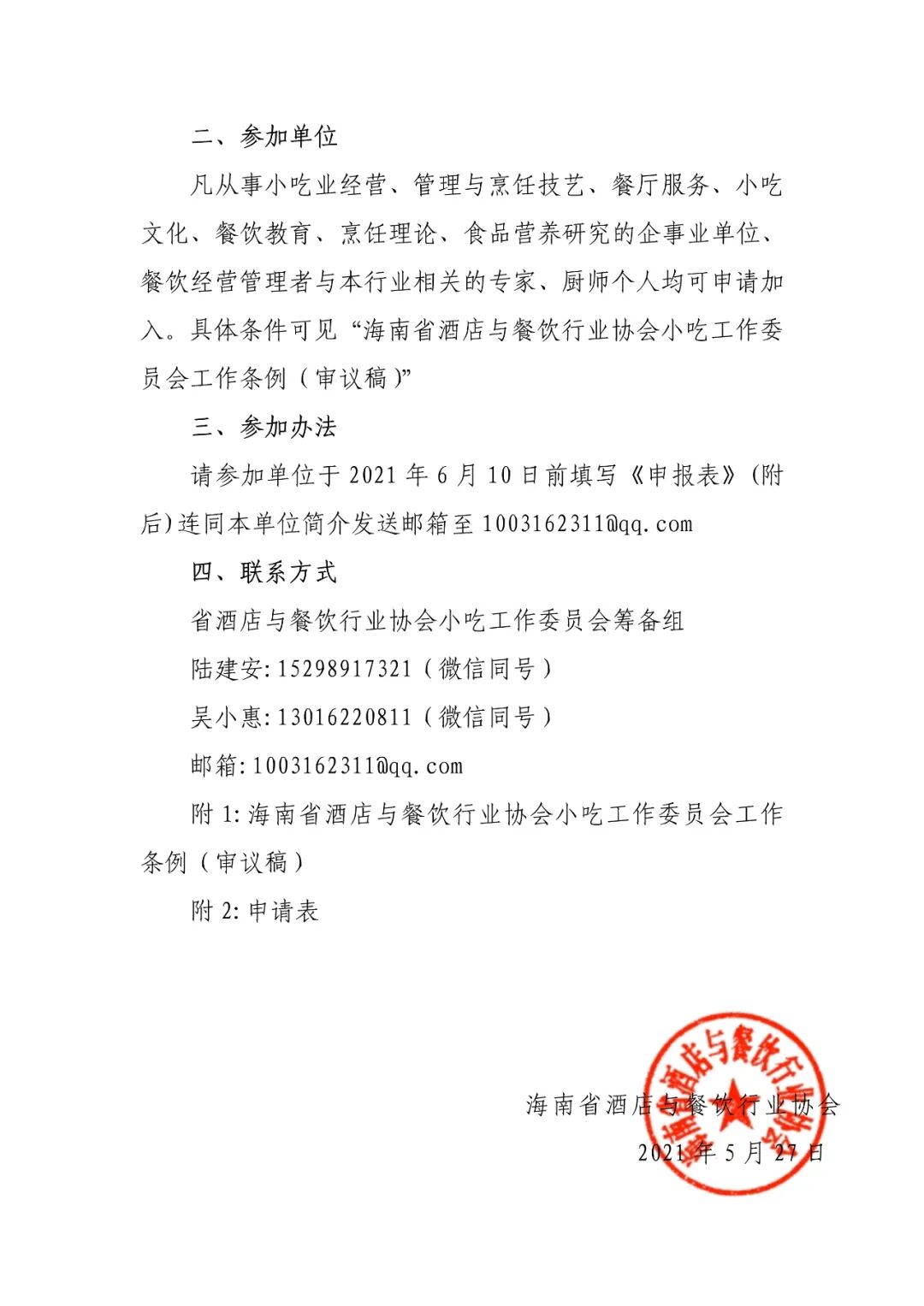 关于筹备成立海南省酒店与餐饮行业协会小吃工作委员会的函