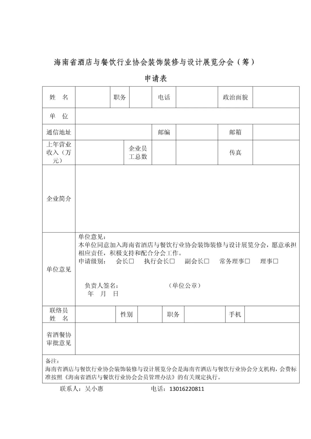 关于筹备成立海南省酒店与餐饮行业协会装饰装修与设计展览分会的函