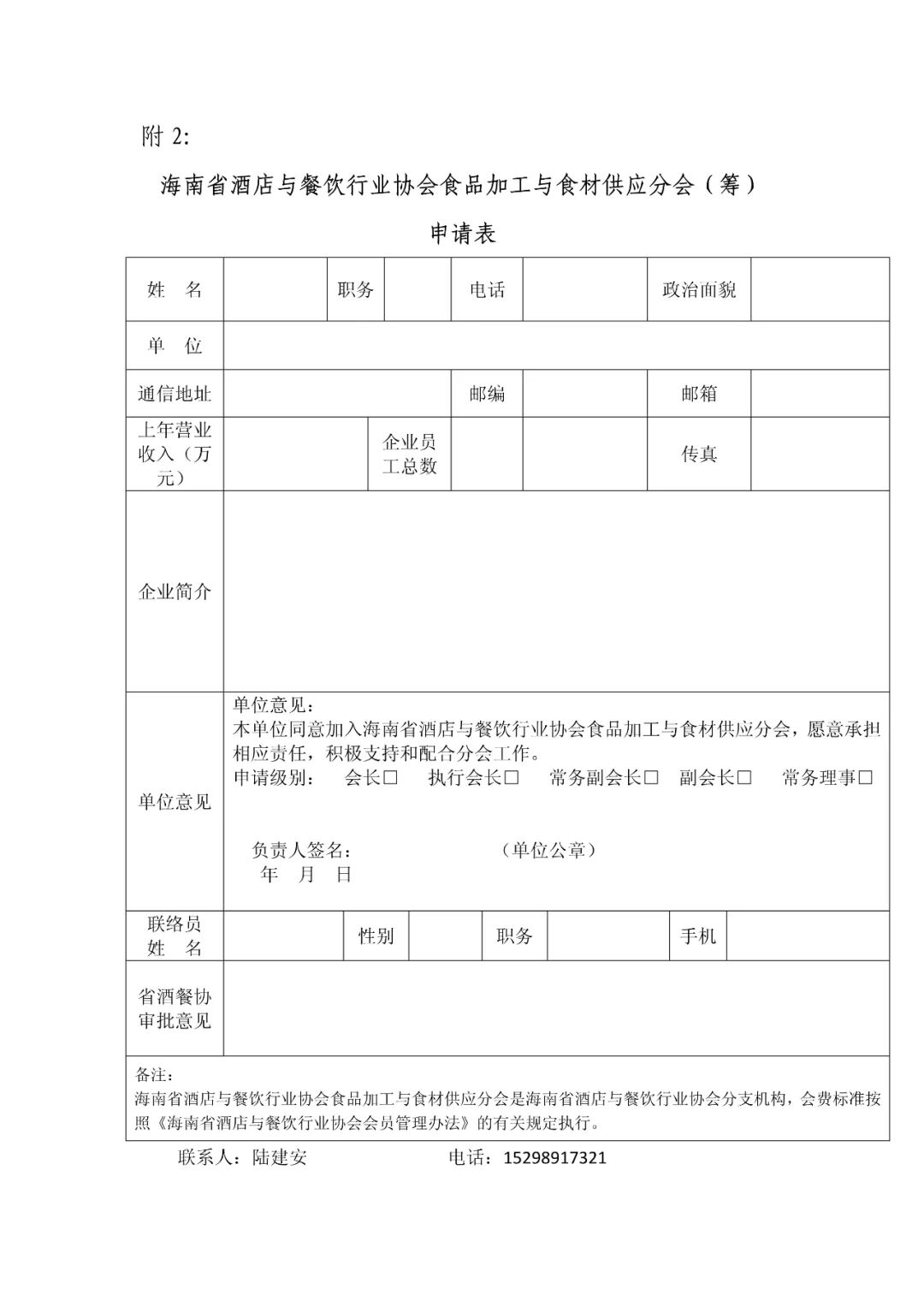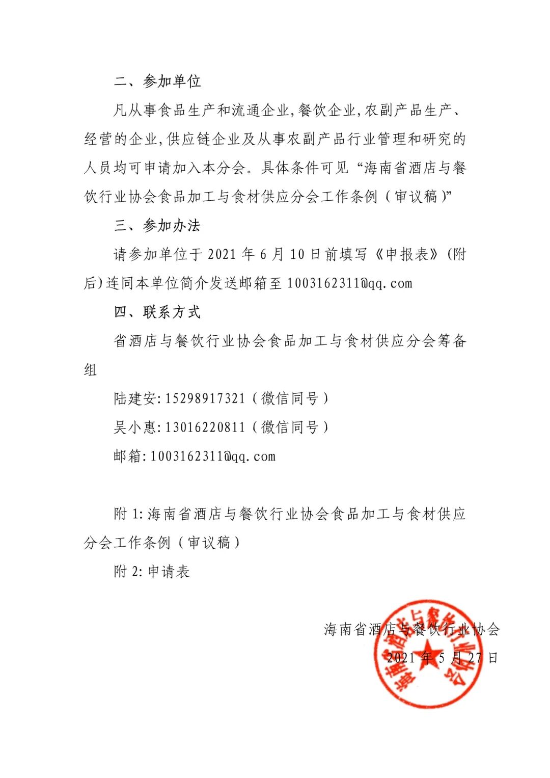 关于筹备成立海南省酒店与餐饮行业协会食品加工与食材供应分会的函