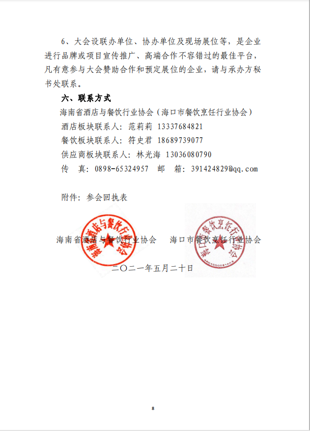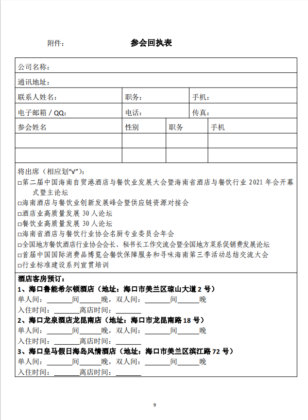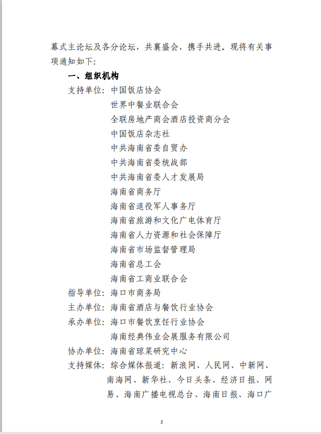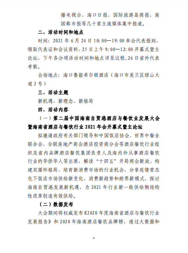 关于邀请参加“第二届中国海南自贸港酒店与餐饮业发展 大会暨海南省酒店与餐饮行业 2021 年会”的函