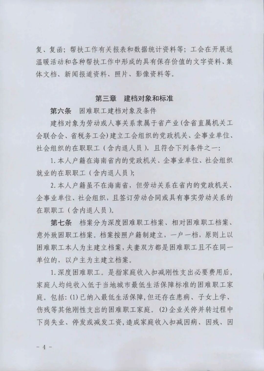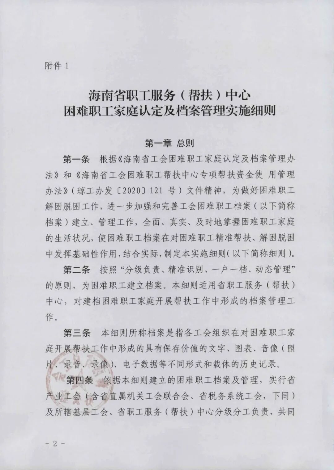 关于印发《海南省职工服务(帮扶)中心困难职工家庭认定及档案管理实施细则》等的通知