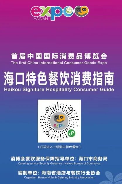 小程序二维码将呈现1)首届中国国际消费品博览会参展指南;2)首届中国国际消费品博览会导览手册;3)馆内各展位楣板或宣传挡板上,全方位为省外来宾馆内餐饮消费及线下门店消费提供专业引导。