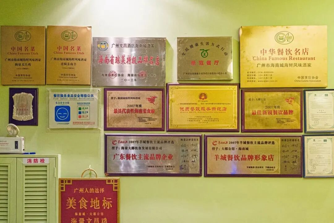 1998年开业,1999年参加广州国际美食节,还拿下“美食精品展示”一等奖!后来也因为海南文昌鸡,拿下2002年“羊城十大明星餐饮企业”、2005年首届广州“百佳”餐饮企业,实力一直在线!走进海南城,就像穿越到海南一样!二楼的包间挂满海南风情壁画,桌上的台灯与天鹅装饰如收藏品一般,还有花瓶柜子通通都是开业时留存到现在的珍藏,也是老板的心头好!海南城三楼的大椰公馆更像是一个中式展览厅,各种古董酒柜、花瓶、壁画,边吃饭边欣赏,实属一种享受!