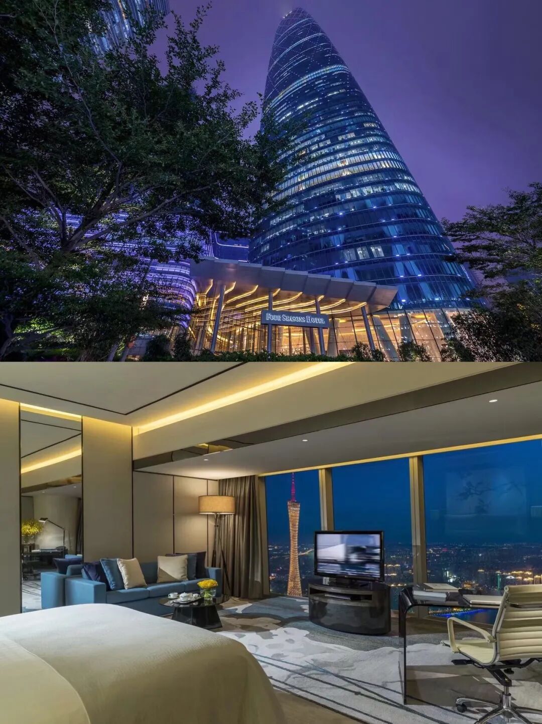 时尚地标广州四季酒店高踞广州国际金融中心(IFC)103层。矗立于风光旖旎的珠江河畔,坐拥中国第三大都市及经济增长中心的地利之便,广州四季酒店拥有344间豪华客房及奢华套房,客房设计时尚豪华舒适,在世界各地及本土名家的艺术精品点缀下,处处彰显高雅品味。7家别具风格的高雅餐厅和酒吧城内高级会务场所,以及私密独享花水疗中心,于珠江新城核心区域尽 显尊贵。