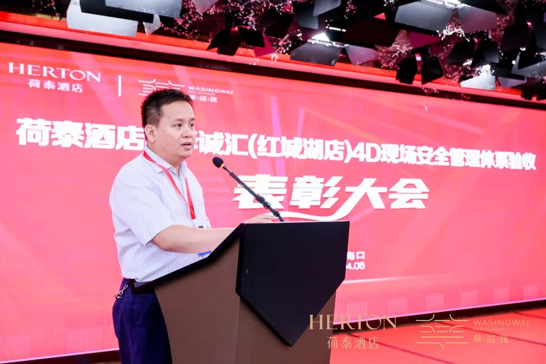 喻总代表荷泰集团总部感谢各界领导和同行的莅临指导,感谢在4D建设过程中付出努力的荷泰伙伴。红城湖店是荷泰集团导入“4D现场管理”的首次尝试单位,在集团推行精细化管理的道路上取得了阶段性的成果;通过这次4D的建设,大家在思想上达成了一定程度的统一,在认知上得到了提升,大家团结协作能力和水平得到了提高,同时,团队的凝聚力也得到了增强,为我们完成目标任务奠定了基础。今天4D建设完成了验收,不是4D建设工作的结束,而是开始,是我们开启精细化管理的起点,4D现场管理贵在坚持,希望我们的团队能够持之以恒,不断地提升、提炼,为集团其他各店树立榜样,同时为其他各店导入4D现场管理提供支持和支撑!此次4D食品安全现场管理体系的导入将是荷泰酒店&华诚汇酒家前进道路上的又一座里程碑,全体员工将万众一心,众志成城,落实4D餐饮管理理念,提高服务水平,保证“舌尖”上的安全,将以此为契机,再接再厉,为消费者提供更安全、更放心、绿色、环保、健康、营养的美食。