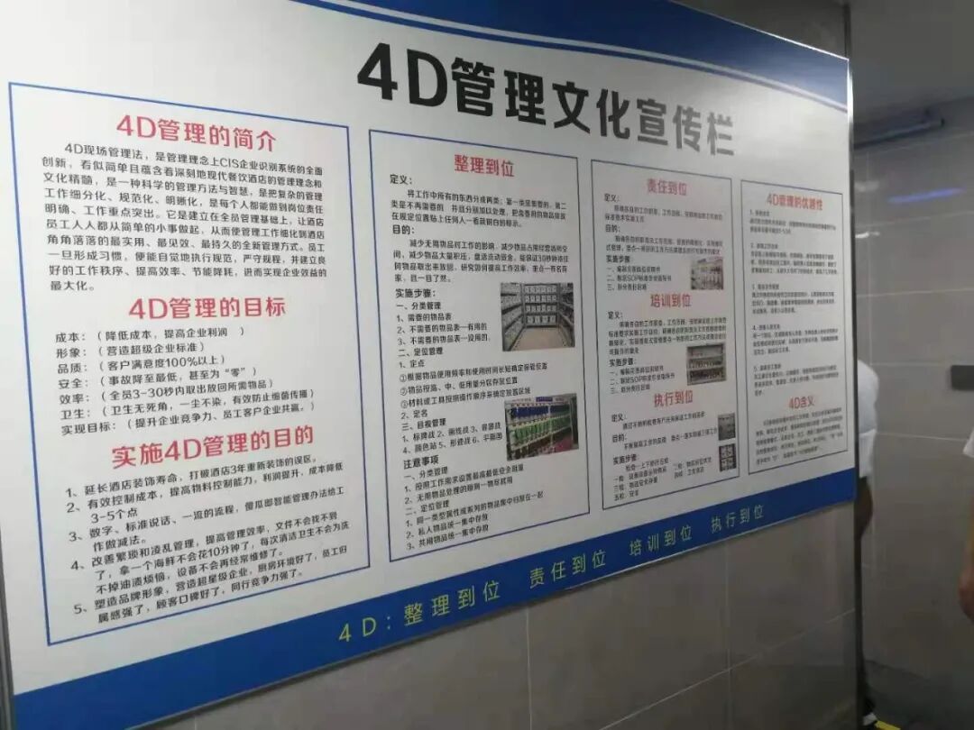 餐饮业有许多管理体系,目前最受关注的叫做“4D现场管理体系”。它由日本的5S管理结合中国餐饮业具体特点演变而来,又称为卓越现场管理法。