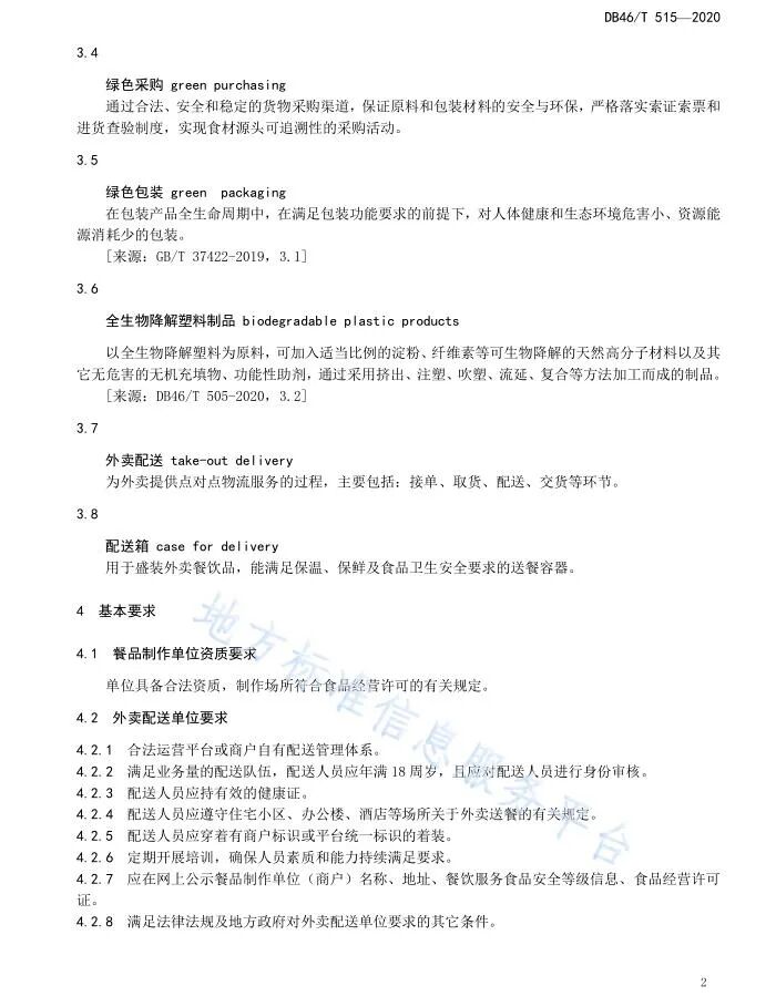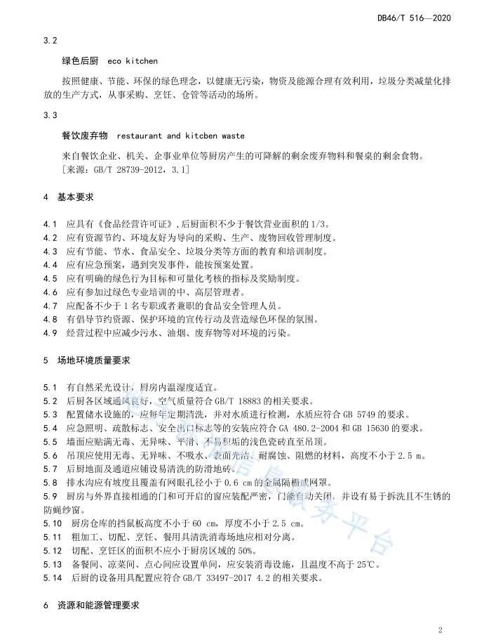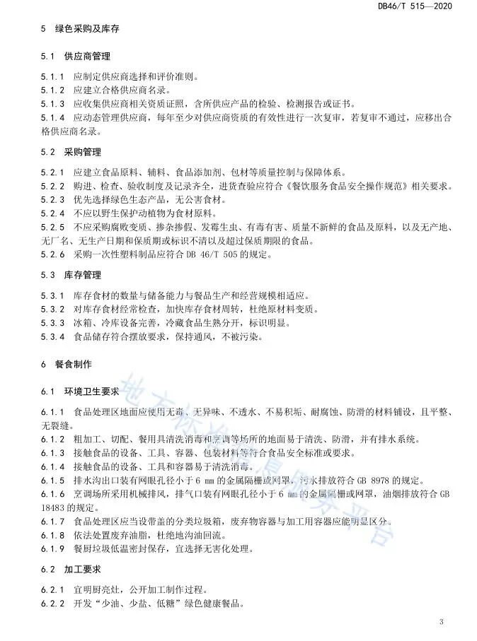 《餐饮企业绿色后厨管理规范》、《餐饮绿色外卖管理规范》正式获批海南省地方标准