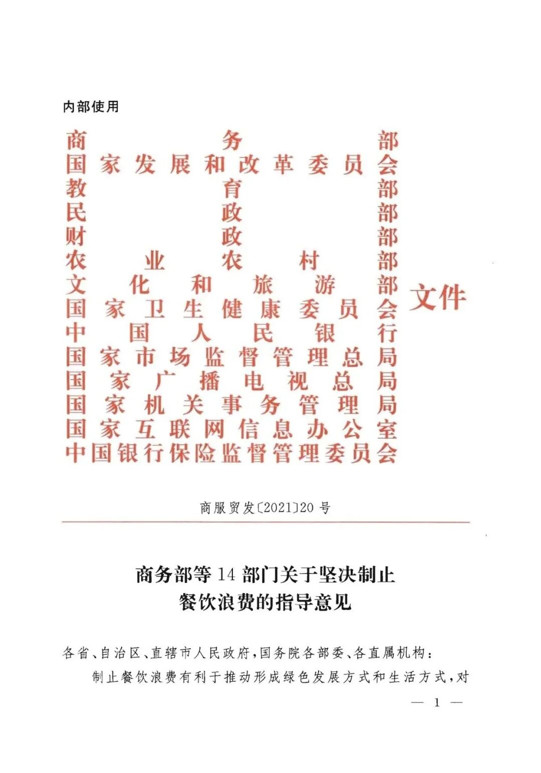 关于转发商务部等14部门《关于坚决制止餐饮浪费的指导意见》的函