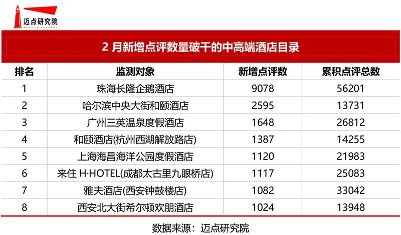 榜单显示,广州三英温泉度假酒店、雅夫酒店(西安钟鼓楼店)、云和夜泊酒店(上海浦东国际机场店)、成都蓝城悦榕美食文化酒店、长沙美宿悦致酒店、来住H•HOTEL(成都太古里九眼桥店)、上海海昌海洋公园度假酒店、珠海长隆企鹅酒店、梵铂酒店(广州白云机场体验店)、三亚柏瑞精品海景酒店位列榜单前十。