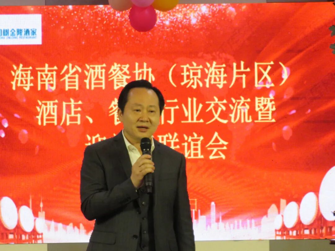 省酒餐协执行会长陈恒向琼海和树金隆酒家董事长李果对本次活动鼎力支持表示感谢,并代表协会感谢在百忙之中能够参加此次活动的在座酒店餐饮企业总经理表示诚挚地问候及热烈的欢迎。他站在协会的角度对酒店餐饮行业今后的发展浅谈了自己的看法供大家参考。第一,坚信行业美好的未来。海南是中国旅游业向内发力的着力点,尽管这几天疫情反扑,酒店餐饮业的订单取消比较多,但疫情应该是可控的。经过去年的抗击疫情,酒店餐饮企业无论从经验还是防控设备上都有了根本的改进,像大面积疫情的发生应该不会出现。临近春节,如果河北的疫情能够得到有效控制,出现拐点,海南酒店餐饮业应该会有比较好的收获;海南有好的地理优势、有天然的屏障、政策优势、气候条件优势,特色旅游在海南一定会蓬勃发展。有一个值得关注的重大改变:过去的旅游模式是来海南旅游顺便购物,现在的局面是专程来购物顺便旅游。今后购物旅游、教育旅游、康养旅游、会展旅游、(特别是会展,全国这么多省份当中,海南才有这种会展奖励政策)、以及体育旅游、海洋旅游、亲子旅游都具有更多挖掘空间,所以请大家要坚信我们酒店餐饮行业的美好前景。第二,坚持创新求变,疫情之后最大的变化就是不确定性成了确定的存在,行业要在不确定中做确定的事,要求我们始终要创新求变。酒店行业的客房服务可变的可能性有限,但是餐饮及康养板块等是可以拓展更多的。如很多度假酒店没有娱乐场所,建议增加音乐餐酒吧、烧烤园等晚上可以继续营业的模式。酒店餐饮企业要在产品、营销、经营模式等方面不断创新,更好的服务消费者,提高服务品质。第三,坚定走高质量发展道路,疫情之后国际旅游还将持续消停。国内游在疫情后有很多发展变化,越来越注重安全性、私密性、绿色化、特色化,过去消费者注重的是价格,现在注重的是品质。酒店餐饮业坚持提高服务品质,走品质发展道路。第四,酒店餐饮业更要坚守一方平安,现在疫情还是比较严峻,酒店餐饮企业是窗口行业,必须要做好疫情防控,越严格、越认真、消费者越放心,特别是公勺公筷的坚决推行。最后,陈恒执行会长表示,春节期间是酒店餐饮业同仁最辛苦、最繁忙的时候,都是顾大家弃小家,付出牺牲很多,他谨代表行业协会祝愿酒店餐饮人保重身体,劳逸结合,身体健康,家庭幸福!
