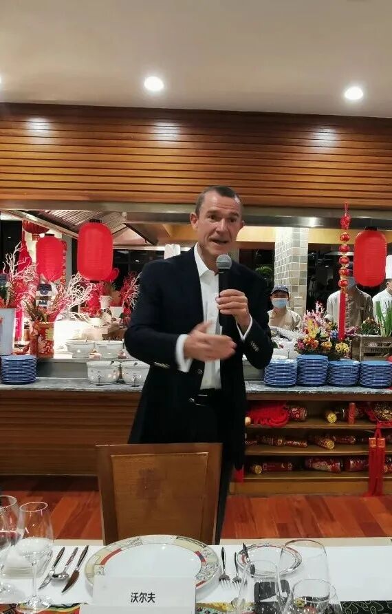 谭文斌总经理在晚宴上结合海南区酒店行业相关数据分享了近期海南区酒店市场情况以及发展趋势。他提到2020年整体来说,海南区酒店行业表现十分亮眼,可以说是疫情后全中国酒店行业恢复的最好的区域。但同时他也表示了自己的担忧,认为在今年初疫情有所抬头的趋势下,酒店方面需要做好产品调整和价格调整的准备。最后,他向全场嘉宾表达了新年贺意。