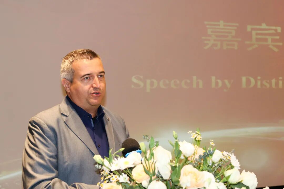 三亚香格里拉酒店总经理Rudolf Alexander Gimmi作为企业代表发表了讲话,他充分认可三亚中瑞与三亚香格里拉酒店合作过程中所取得的成绩,也对学院学生的未来发展给予了深厚的期望,希望在三亚未来的酒店行业中能看到更多三亚中瑞学生的身影。