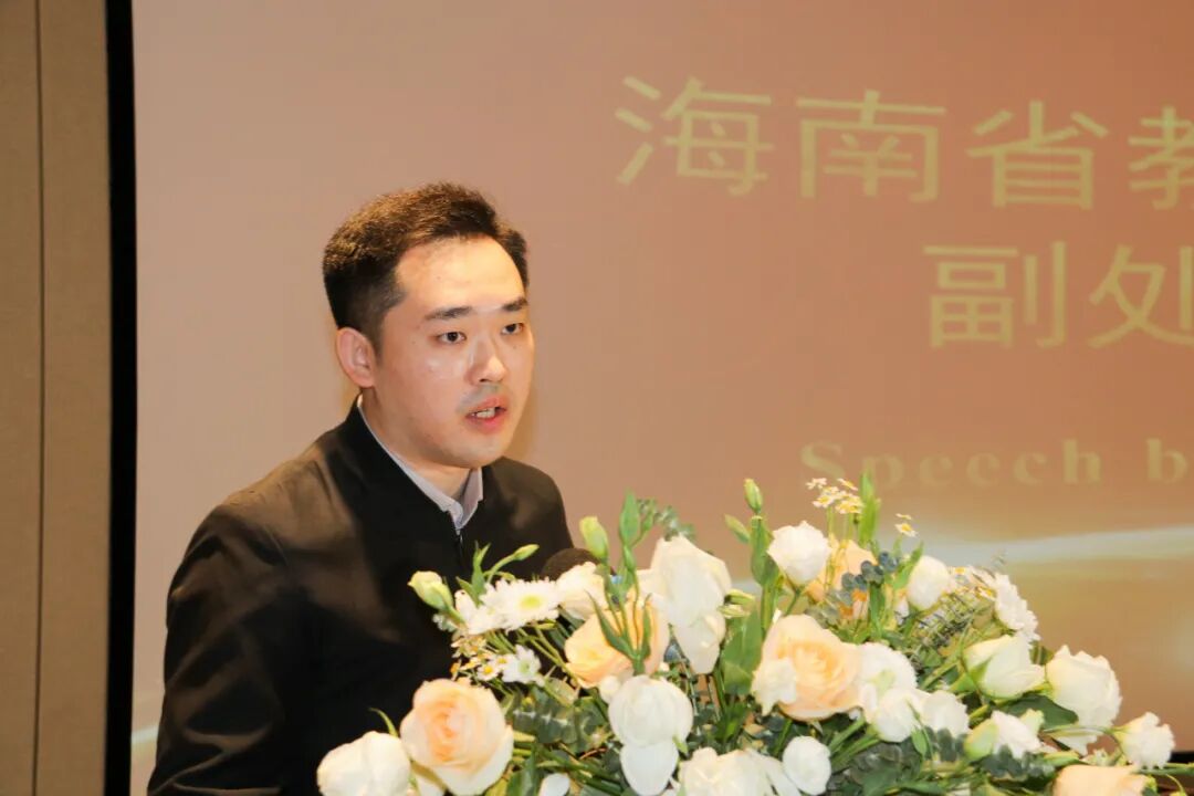 海南省教育厅高教处副处长肖灿在最后发表讲话,他认为三亚中瑞通过与瑞士洛桑酒店管理学院合作,为中国酒店行业等相关产业的发展提供了更好、更高、更全面的人才与智力支持,为海南省酒店业的发展注入更加强劲的动力,目前已取得了有目共睹的好成绩,他殷切希望学院能紧紧围绕海南自贸港建设目标,抓紧机遇、全面贯彻“职教二十条”精神,进一步落实好立德树人的根本任务。
