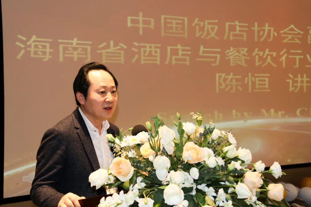 中国饭店业协会副监事长、海南省酒店与餐饮行业协会执行会长陈恒发表讲话