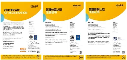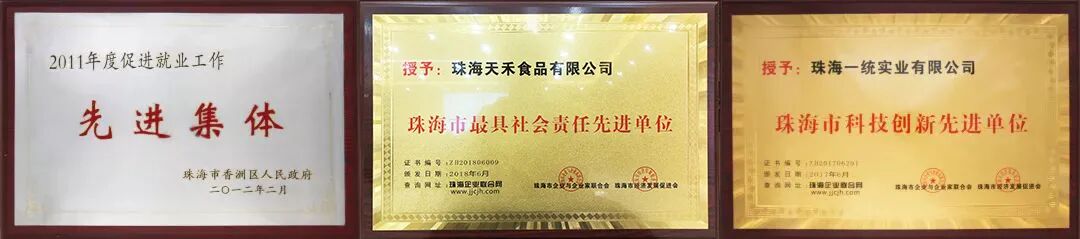 天禾食品早在2001年就通过了国家认监委食品出口注册,并先后通过了ISO22000食品安全管理体系认证、HACCP认证、美国FDA食品安全卫生注册、英国零售商协会(BRC)食品安全认证以及伊斯兰食品国际清真认证,被国家质检总局评定为检验检疫信用管理AA级企业,成为国家认监委认定的“三同”企业。