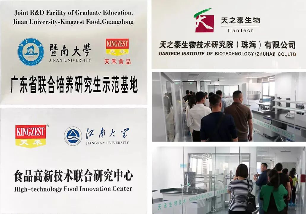 产学研方面,珠海天禾食品有限公司被省教育厅认定为广东省联合培养研究生合作基地,与江南大学合作成立了食品高新技术联合研究中心,与暨南大学合作建立了食品转基因成分检测重点实验室,在食品基础科学和应用科学多领域开展了卓有成效的探索和研究。