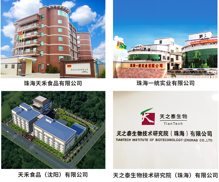 天禾食品,一家集团性规模企业,旗下拥有珠海天禾食品有限公司、天禾(沈阳)食品有限公司、天之泰生物技术研究院(珠海)有限公司和珠海一统实业有限公司。天禾食品以特色高端调味品的研发和生产为主,天之泰生物同时涉足动物疾病诊断及健康产业。旗下珠海天禾食品有限公司、珠海一统实业有限公司均被评定为国家高新技术企业。