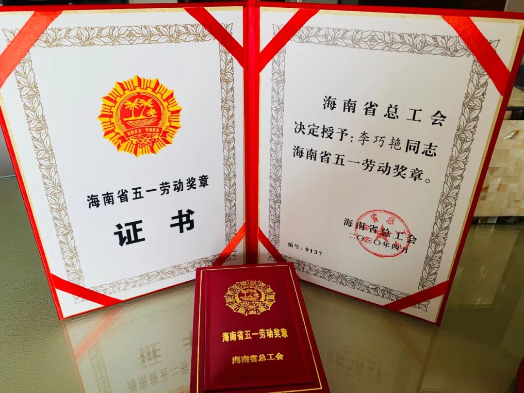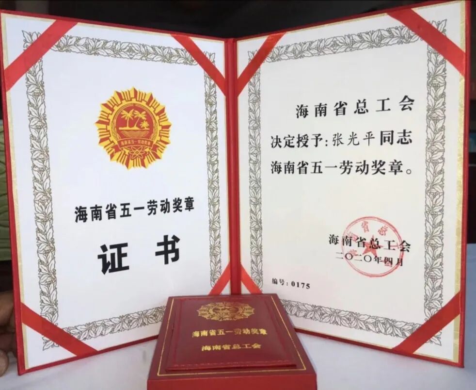 热烈祝贺我省酒店与餐饮行业张光平同志、李巧艳同志荣获海南省五一劳动奖章