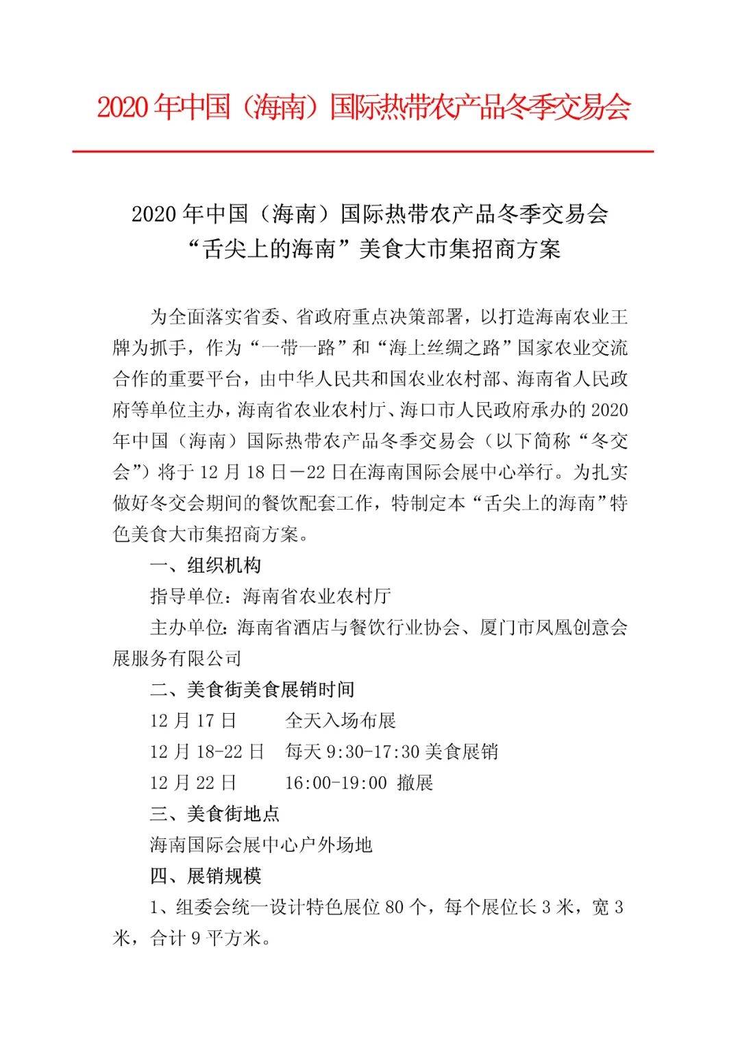 2020年中国(海南)国际热带农产品冬季交易会 “舌尖上的海南”美食大市集正式招商