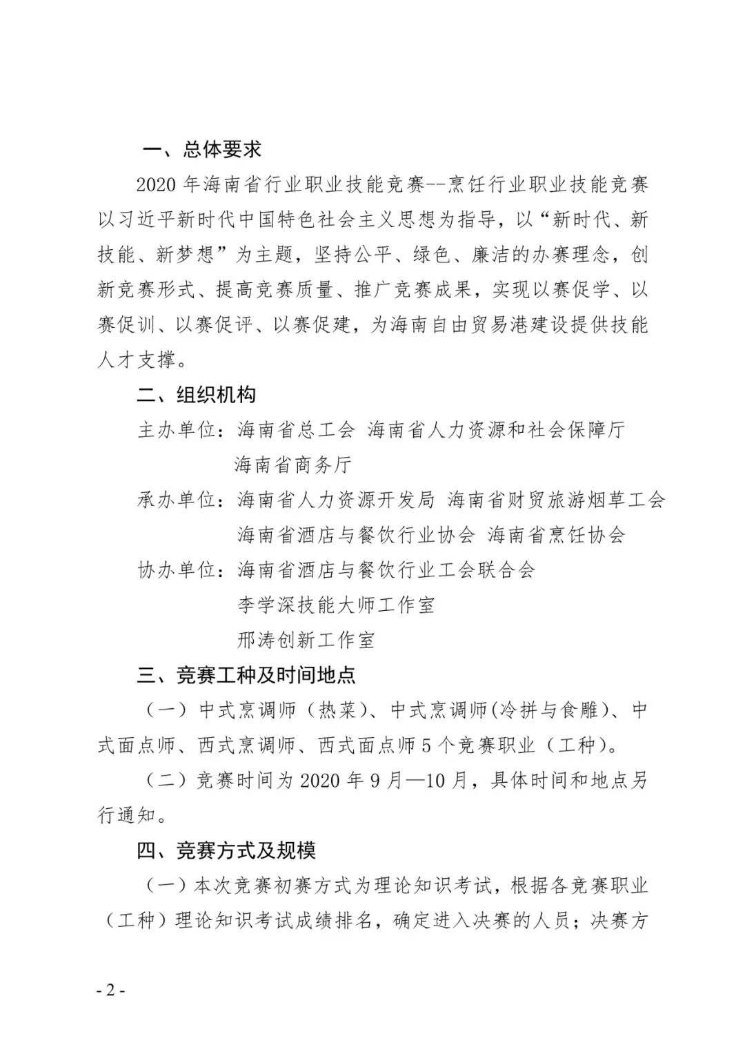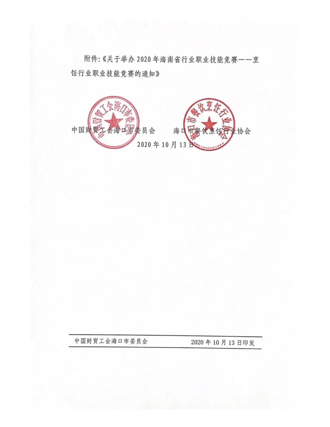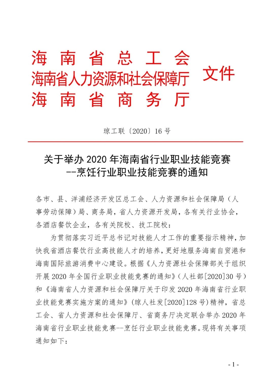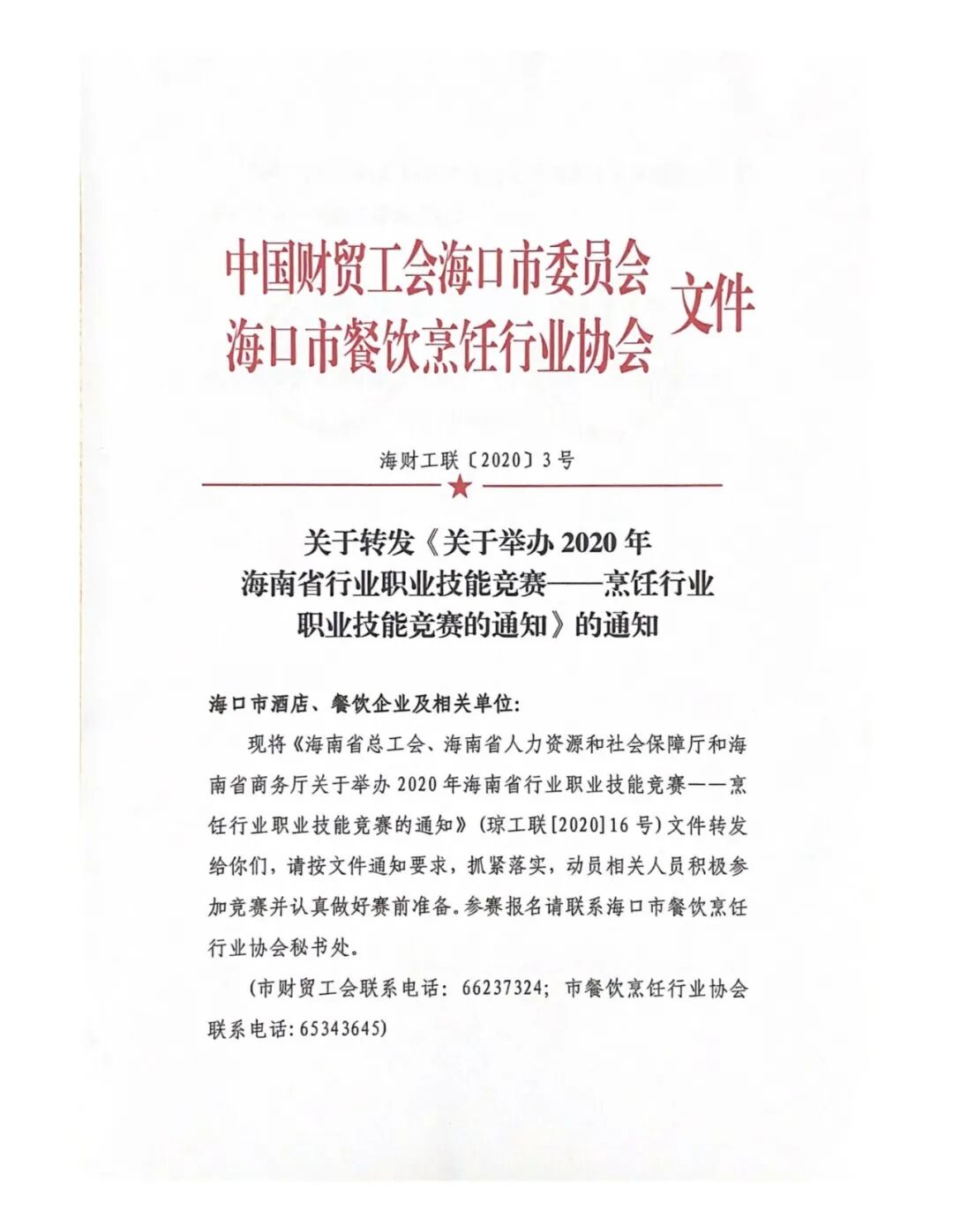 关于转发《关于举办2020年海南省行业职业技能竞赛——烹饪行业职业技能竞赛的通知》的通知