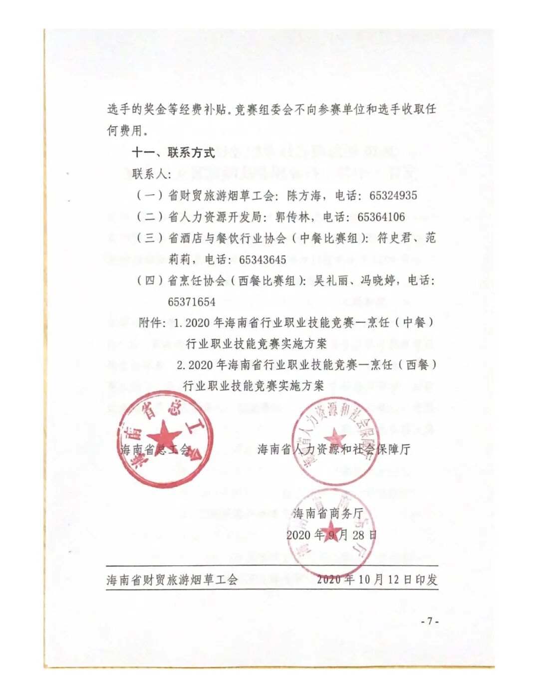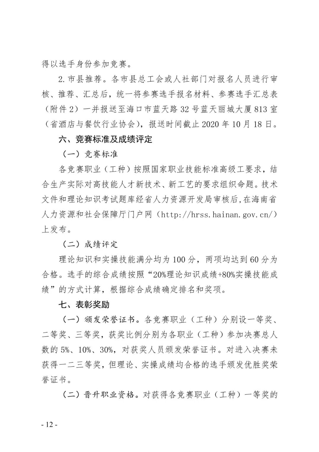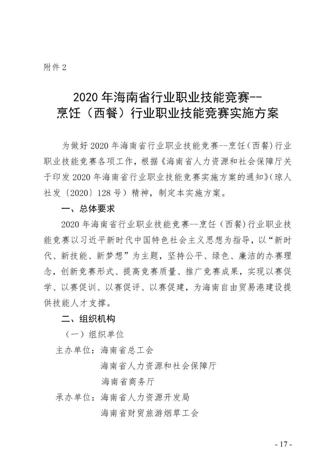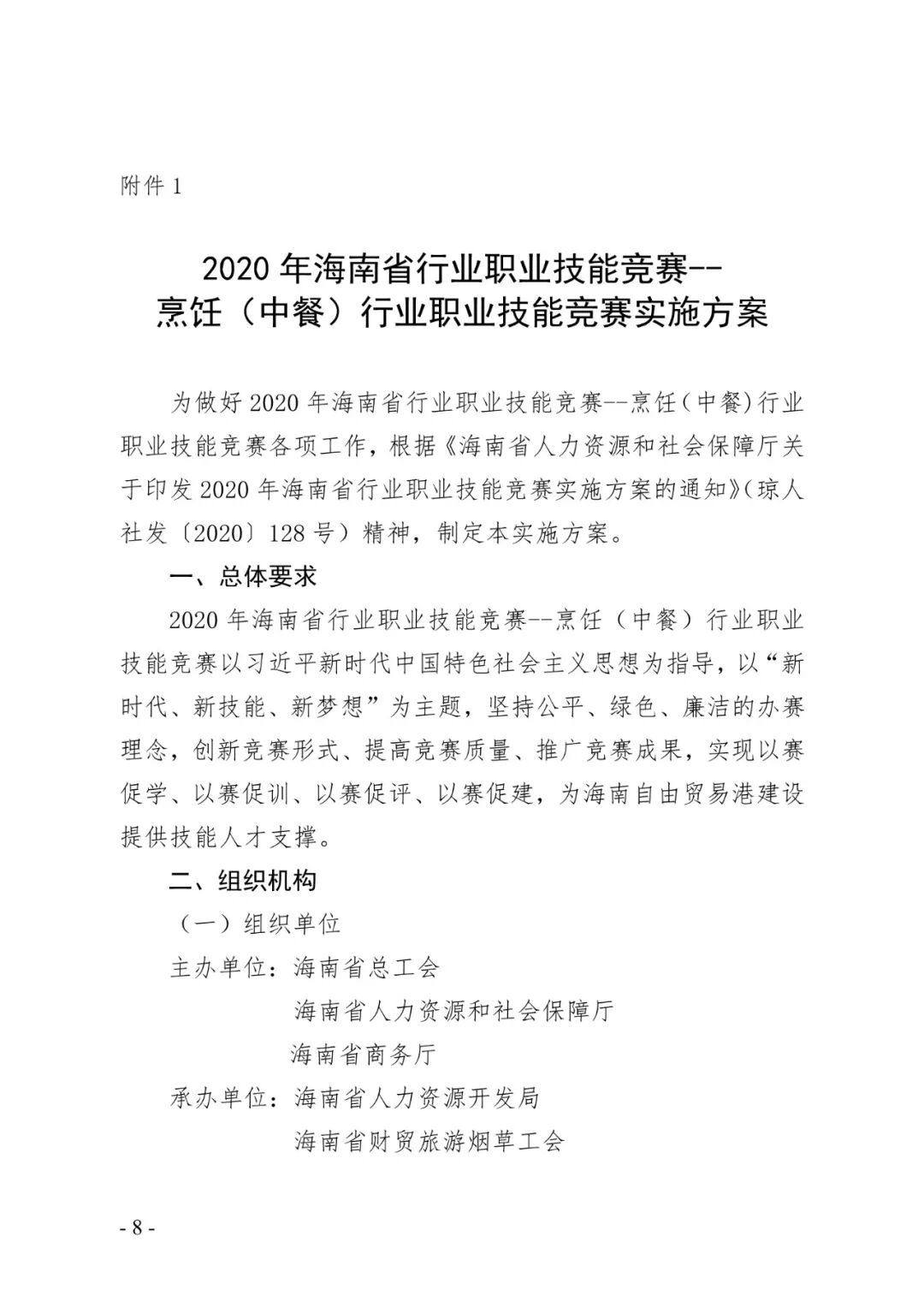 关于转发《关于举办2020年海南省行业职业技能竞赛——烹饪行业职业技能竞赛的通知》的通知
