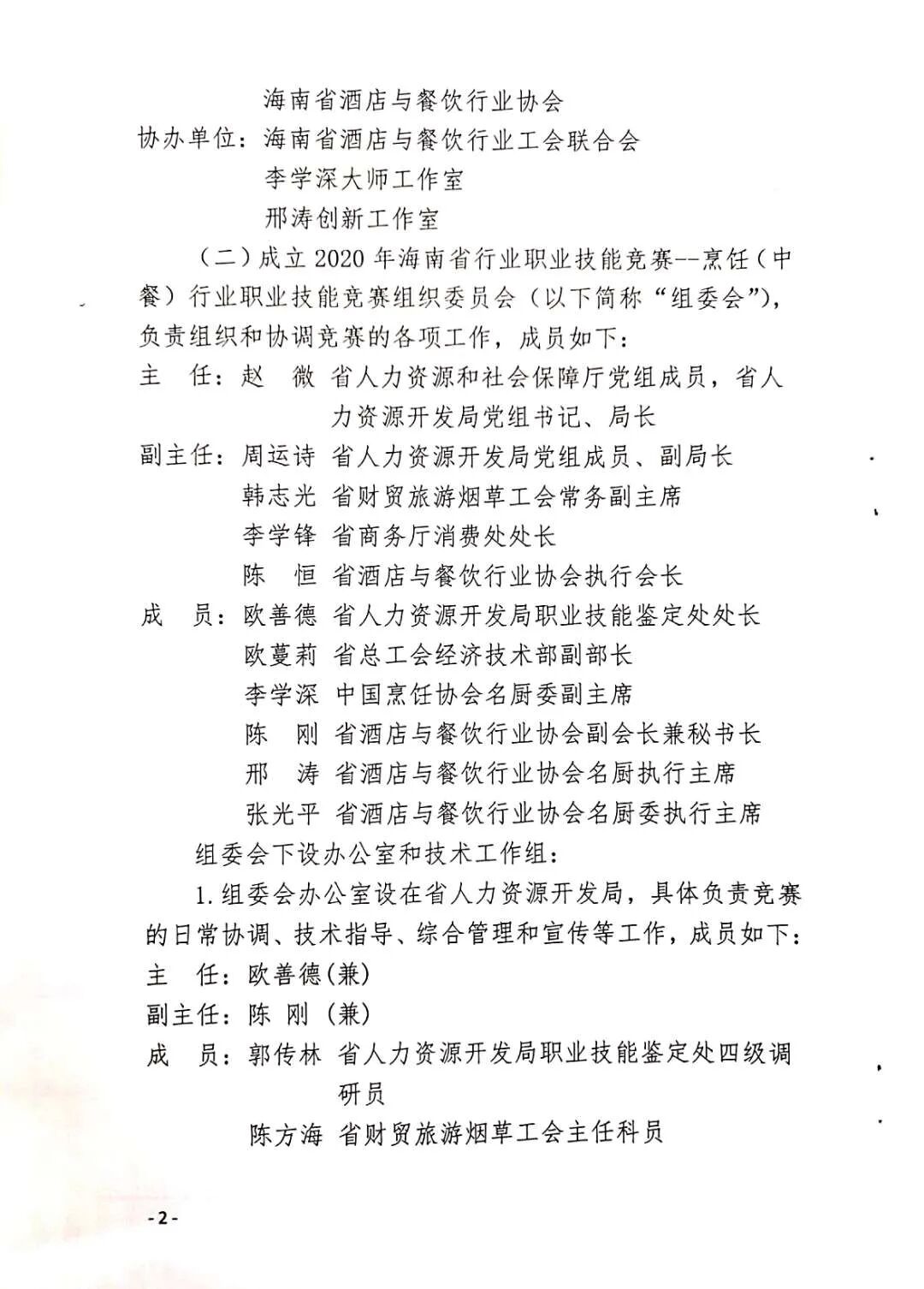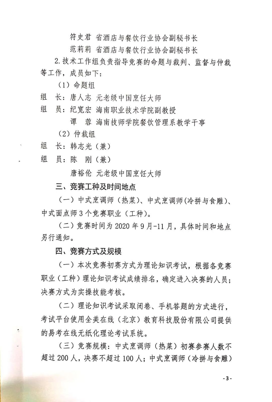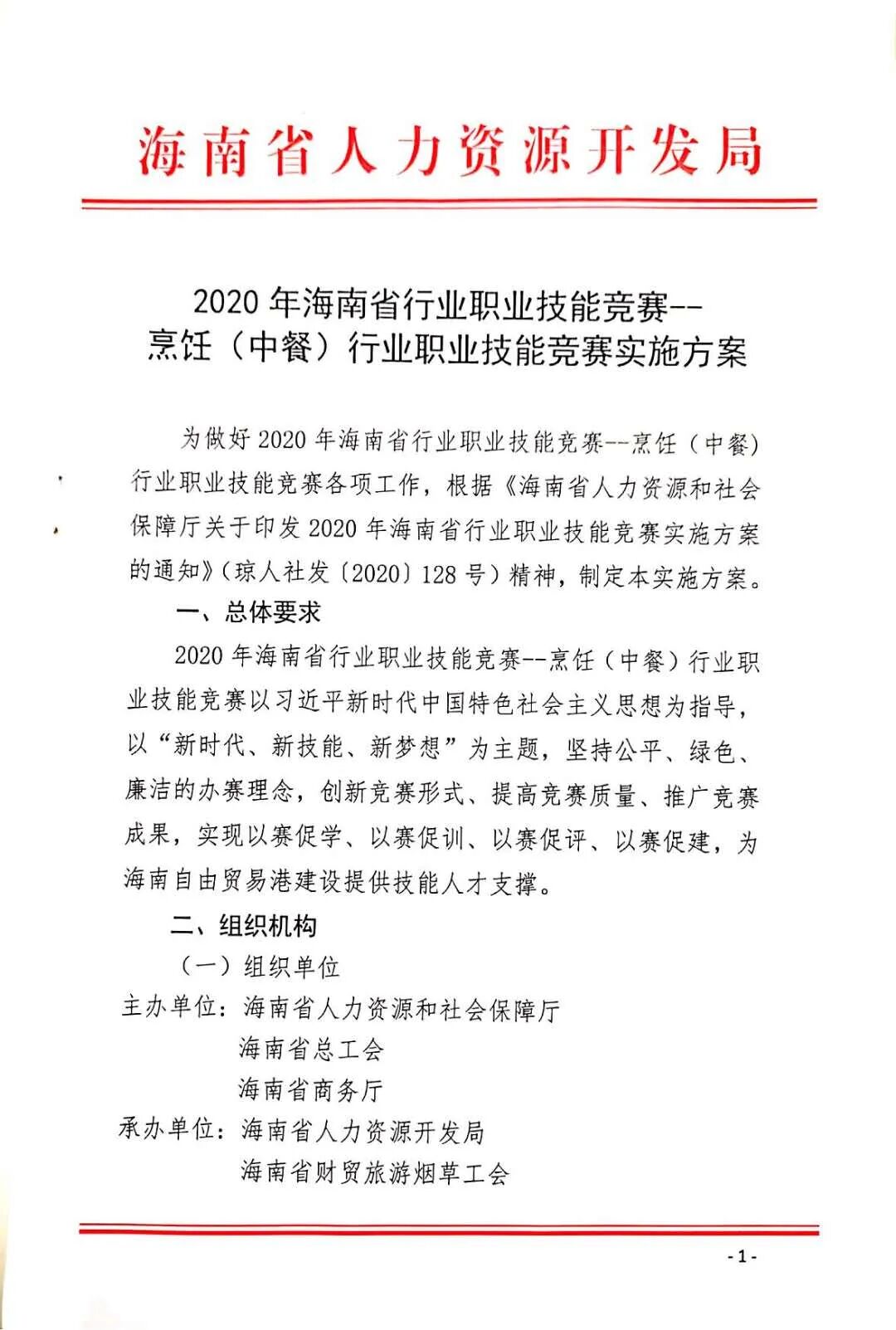2020年海南省行业职业技能竞赛-- 烹饪(中餐)行业职业技能竞赛实施方案