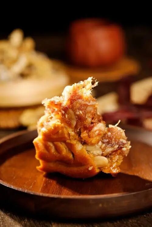 作为水晶宫月饼众多款式之中的主打招牌,伍仁金腿大月饼融合了果仁的酥脆和肉松的咸香。经过烤制后的饼皮棕黄油亮且口感绵软,在口中所铺开的清甜则详细展现了内馅的丰富,细细咀嚼后,多种馅料交织的浓厚滋味还会弥漫到鼻腔,令人回味无穷。