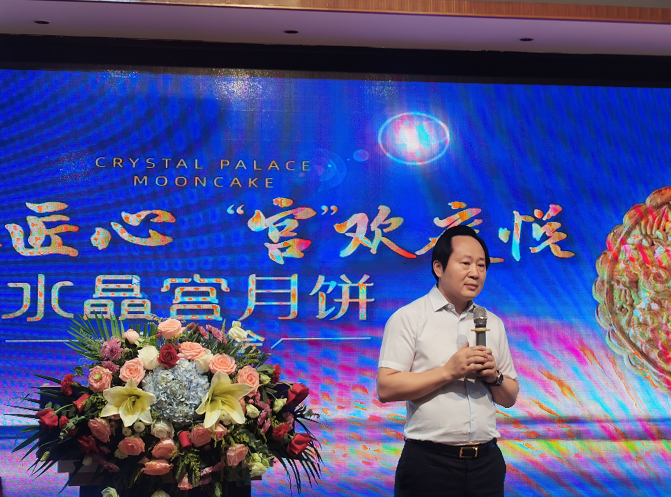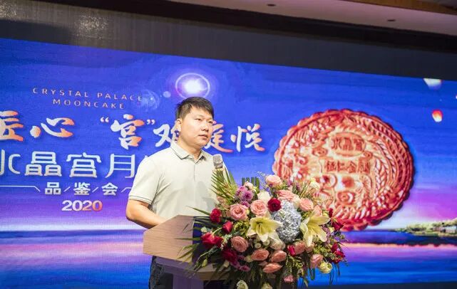 省酒餐协执行会长陈恒在活动上发表讲话,他表示,品牌的发展和前进就是要坚持,用最初心的执着,打造最匠心的产品。同时预祝水晶宫月饼在2020年的销售取得新突破。